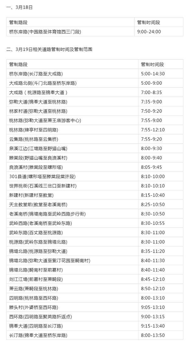 以上管制時(shí)間段內(nèi)禁止車輛、行人在管制路段內(nèi)通行、停放(持有賽道通行證的除外)。