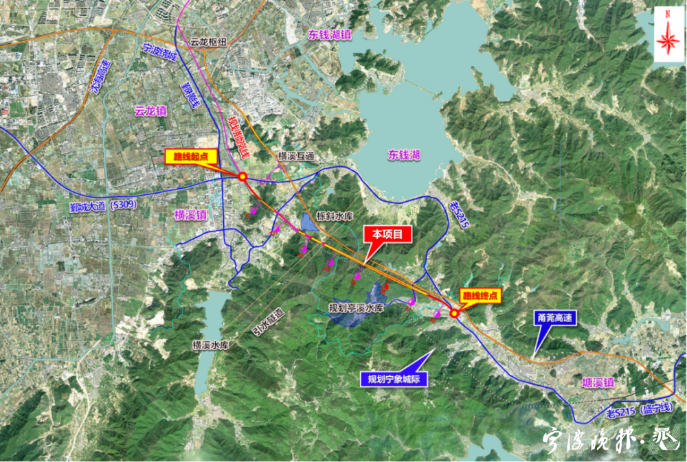 本項目地處鄞州區(qū)橫溪鎮(zhèn)、東錢湖鎮(zhèn),路線起點位于甬莞高速櫟斜互通西側(cè)鄞城大道,與規(guī)劃的鎖嵐路相接,向南經(jīng)孔家譚村、櫟斜村,跨奉錢線、翠竹南路,穿百步劍,終于俞塘村與現(xiàn)狀盛寧線相接,路線全長約8公里。