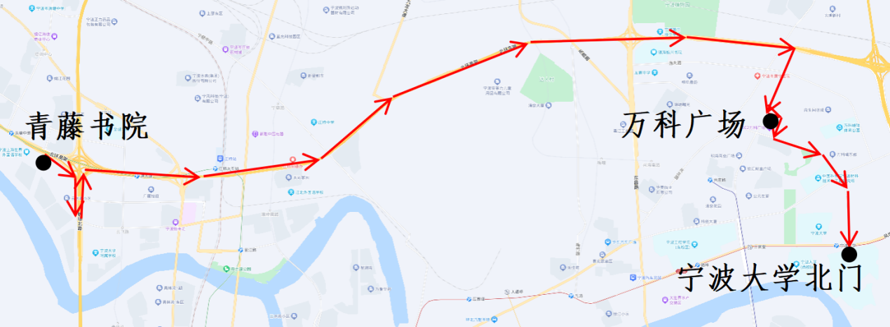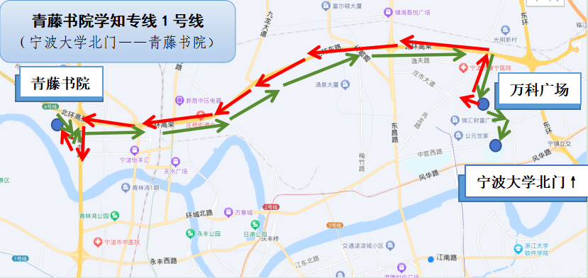 站點設(shè)置:寧波大學北門↑、萬科廣場、青藤書院