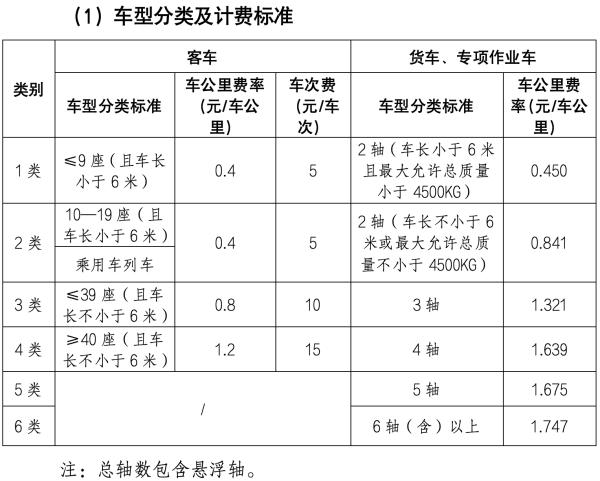 相關(guān)車型的收費(fèi)里程,詳見下表(最終收費(fèi)標(biāo)準(zhǔn)以省政府批復(fù)為準(zhǔn)):