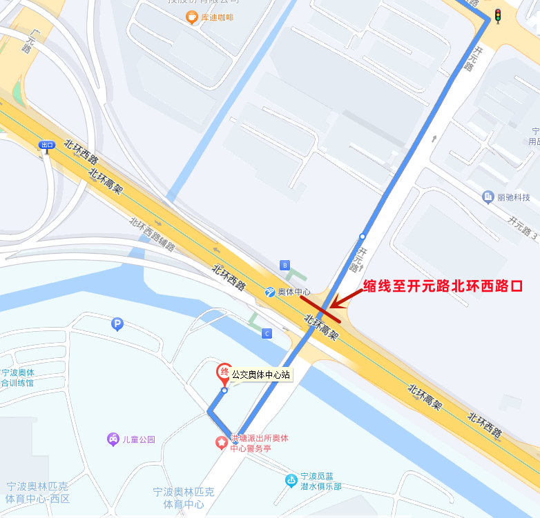 3.臨時(shí)增設(shè)寧波奧體中心北↓?空军c(diǎn)。