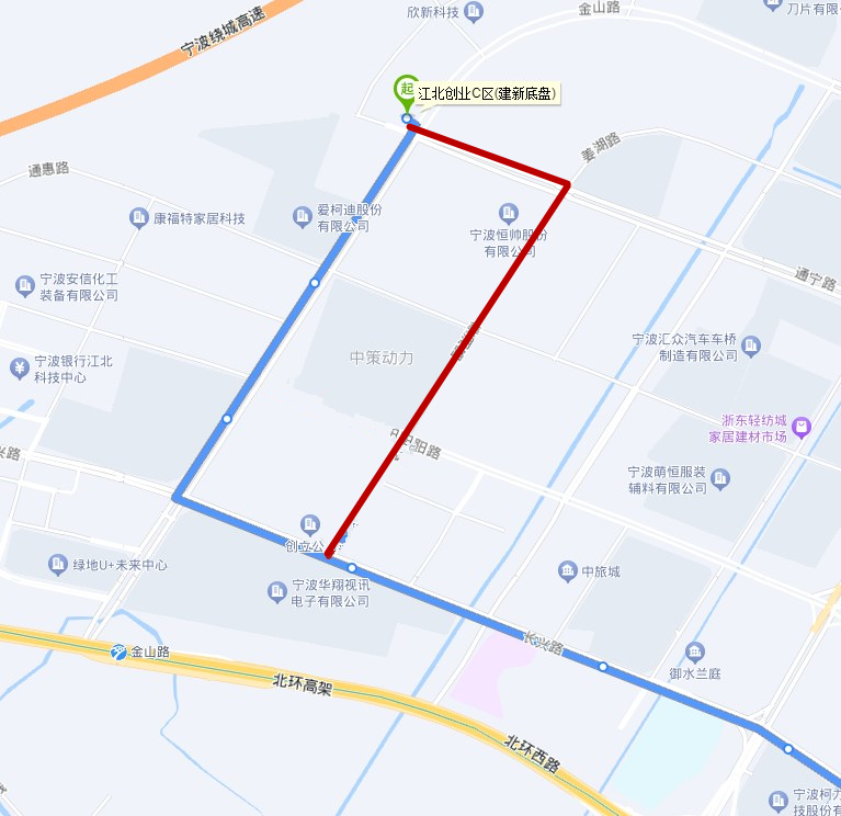 1.調(diào)整走向:江北創(chuàng)業(yè)C區(qū)始發(fā)后改走通寧路、姜湖路、姜湖路長興路口后恢復(fù)原線運(yùn)營。