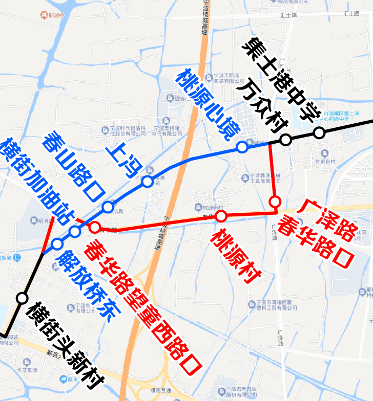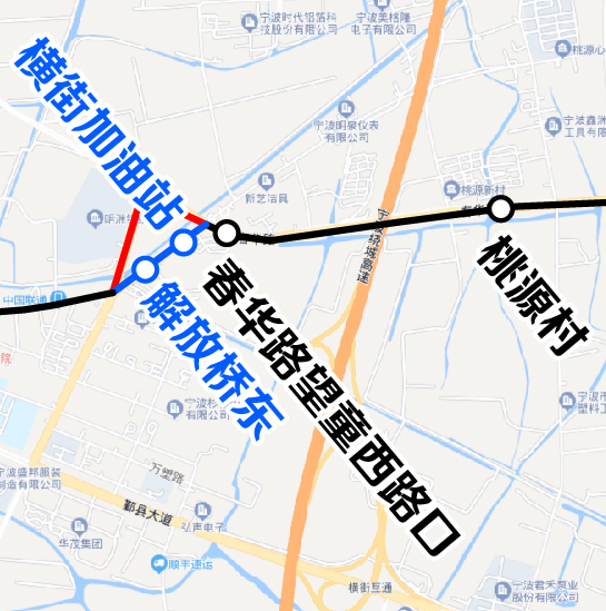 1.按原線運營至望童路鄞縣大道口后,改走鄞縣大道、橫街南路,橫街南路望童路口后恢復原線運營至望童路橫街環(huán)鎮(zhèn)東路口后,改走橫街環(huán)鎮(zhèn)東路、春華路、廣澤路,廣澤路望童路口后恢復原線運行。