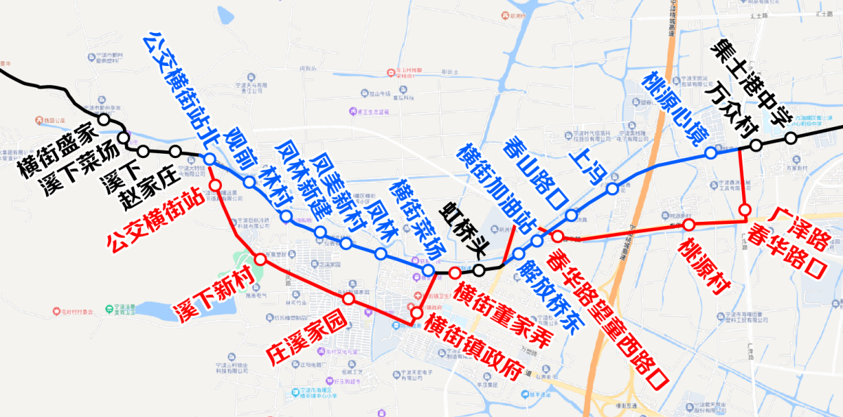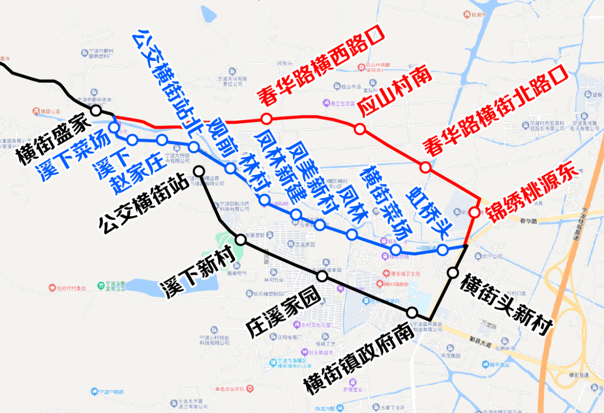 1.按原線運營至望童路春華路(橫街盛家)路口后,改走春華路、橫街環(huán)鎮(zhèn)東路,橫街環(huán)鎮(zhèn)東路望童路口后恢復原線運行。