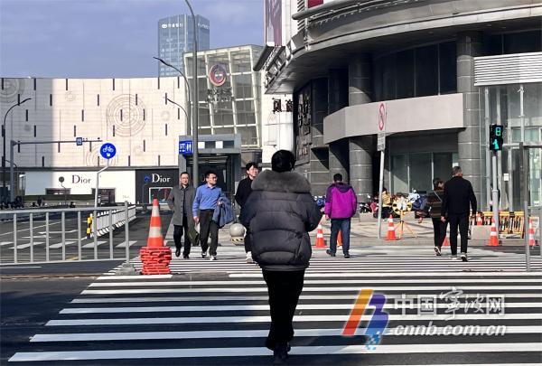 1月31日下午2點(diǎn)40分,隨著綠燈亮起,連接天一廣場一號門和碶閘街的人行道開通,市民在天一和義商圈南北側(cè)便捷往來。