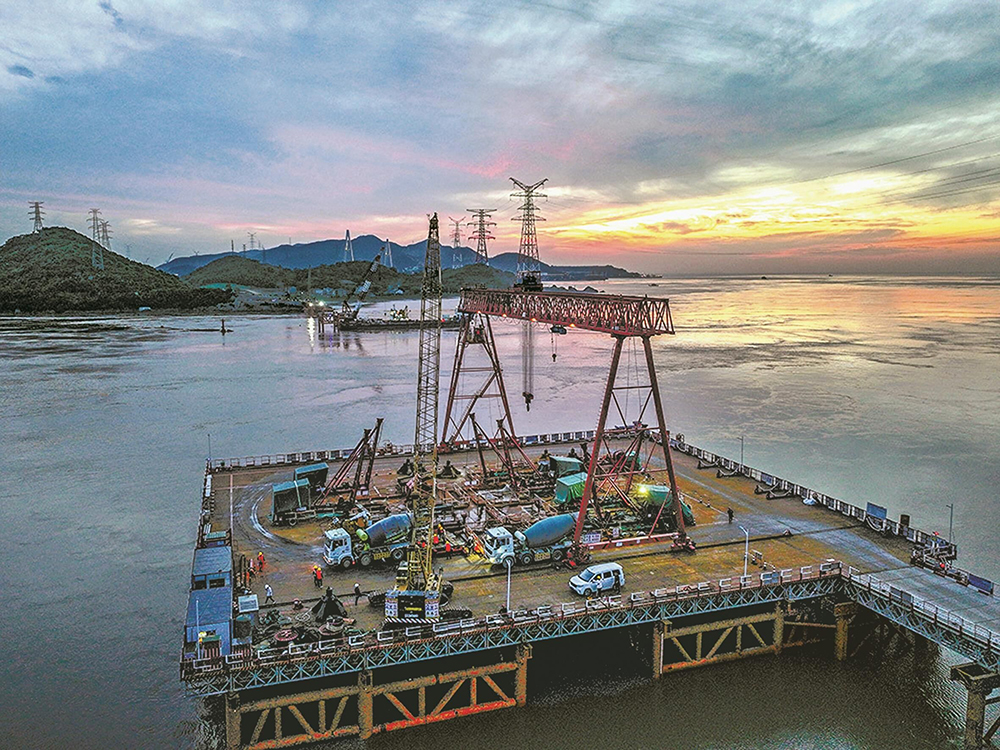 記者從浙江省交通集團了解到,5月19日晚,在10臺混凝土罐車不間斷作業(yè)8小時、實際澆筑283.5立方米混凝土后,甬舟高速復(fù)線富翅門公鐵兩用大橋主墩首樁順利完成澆筑。昨天,施工方中國鐵建大橋工程局表示,接下來將繼續(xù)開展主墩圍堰施工、主墩承臺施工等工作。