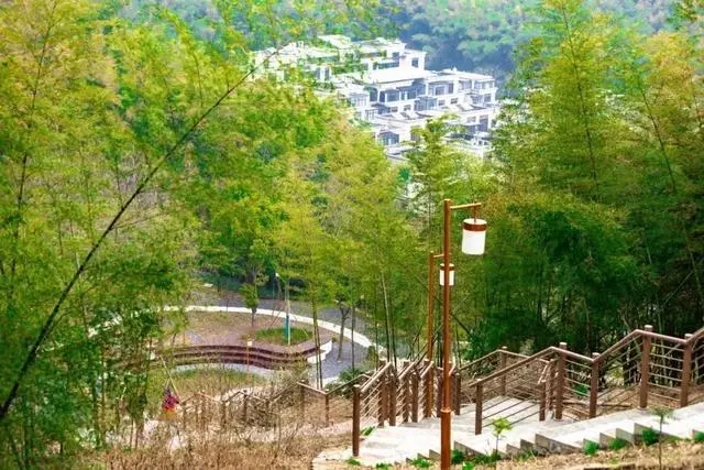 站在步道起點向上望去,石階步道沿著山體綿延而上,兩旁的竹林郁郁蔥蔥,穿行其中野趣十足。