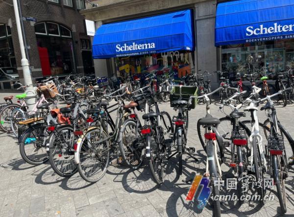 荷蘭首都阿姆斯特丹街頭鱗次櫛比的自行車。 龔旭琪/攝