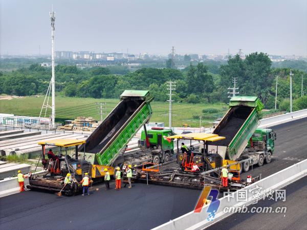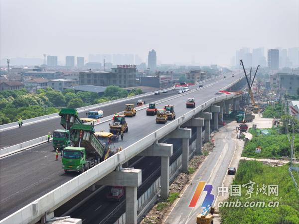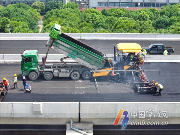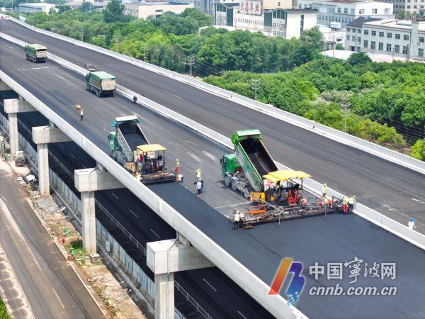 記者從慈溪市交通運輸局了解到,今年5月底,施工方搶抓晴好天氣、全力推進工程進度,高架主線正式進入瀝青攤鋪階段。