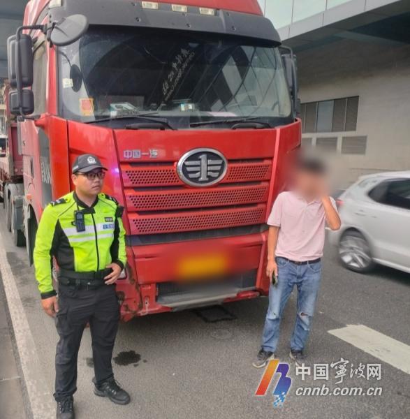 “前段時(shí)間,我們寧波開(kāi)啟了針對(duì)大貨車重點(diǎn)交通違法的專項(xiàng)整治行動(dòng)。今天(6月19日)上午,我們?cè)诒杯h(huán)西路與開(kāi)元路路口整治時(shí),攔下了一輛‘闖禁’的大貨車。不查不知道,一查真是嚇一跳。”江北交警大隊(duì)前江中隊(duì)民警黃佳程告訴記者,他們?cè)谂c“闖禁”大貨車駕駛員交流時(shí),突然聞到他身上有股淡淡的酒味。