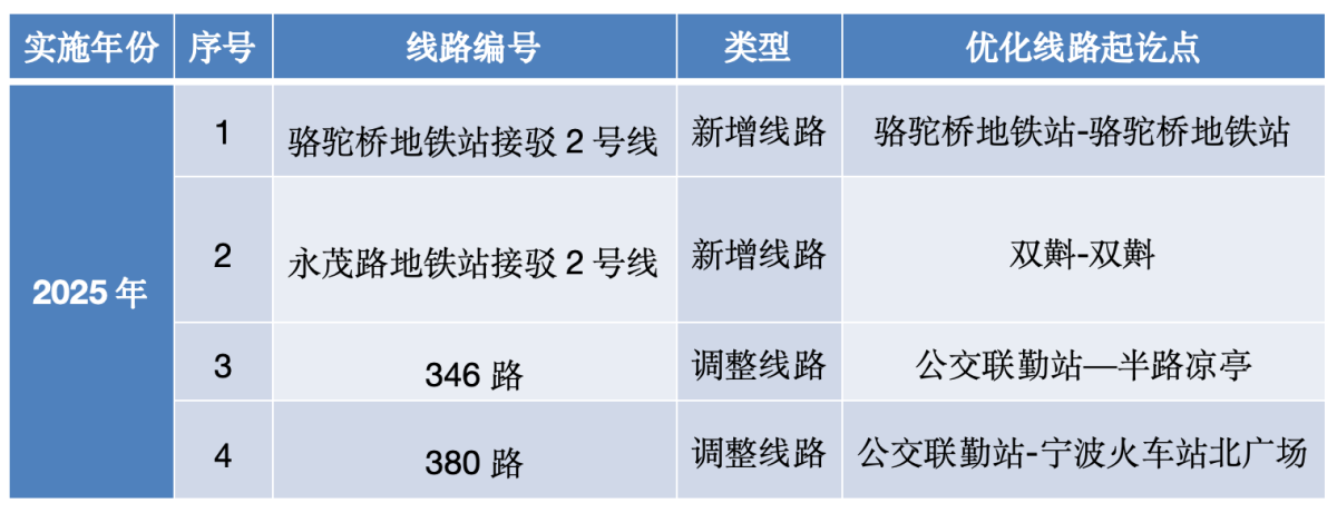 2025年,將實(shí)施線路4條,其中新開通接駁線路優(yōu)化2條,調(diào)整線路2條。