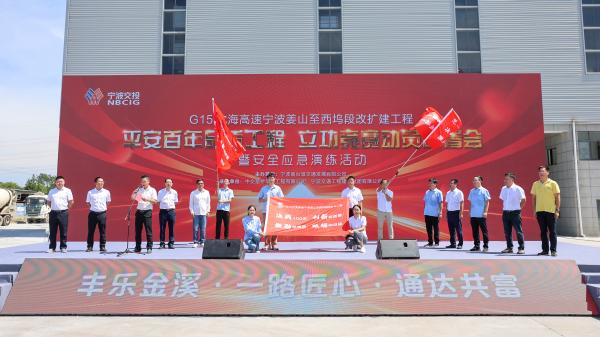 在這場百年品質(zhì)工程立功競賽動(dòng)員部署會(huì)上,寧波市交通運(yùn)輸工會(huì)相關(guān)負(fù)責(zé)人向本項(xiàng)目施工單位授旗,項(xiàng)目公司現(xiàn)場人員則表達(dá)了將本項(xiàng)目建設(shè)成為平安工程、品質(zhì)工程、示范工程的堅(jiān)定信心和決心,確保項(xiàng)目順利建成并如期通車。