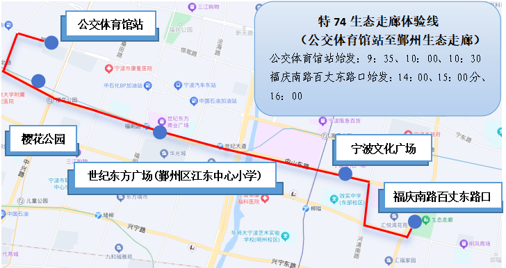 特74生態(tài)走廊體驗線(公交體育館站至鄞州生態(tài)走廊)