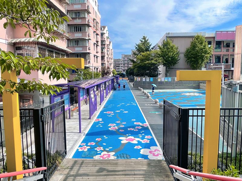 如今,鄞州以“繡花”功夫,打造了58條上學(xué)安全、放學(xué)有趣的“最美上學(xué)路”。“ 最美上學(xué)路”也從當(dāng)初的單色路面1.0升級到現(xiàn)在的8.0版本,充分體現(xiàn)了“友好服務(wù)”和“文化與文明相融合”兩大理念。友好服務(wù)即兒童友好、老人友好、人居友好,既服務(wù)學(xué)校、孩子、家長,更服務(wù)街區(qū)周邊的市民。延伸出了不同顏色劃分路線、規(guī)劃接送區(qū)域,新增了風(fēng)雨連廊、照明燈桿等硬件設(shè)施。
