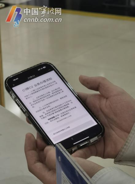 正當(dāng)小曹準(zhǔn)備取號排隊(duì)時(shí),導(dǎo)辦員攔住他,告訴他一個(gè)好消息——今天起5條便民新舉措實(shí)施,其中“C1降C2”業(yè)務(wù)可以“網(wǎng)辦”了。隨后,導(dǎo)辦員指導(dǎo)小曹登錄寧波交警官方微信并辦理相關(guān)申請,前后不超過5分鐘。