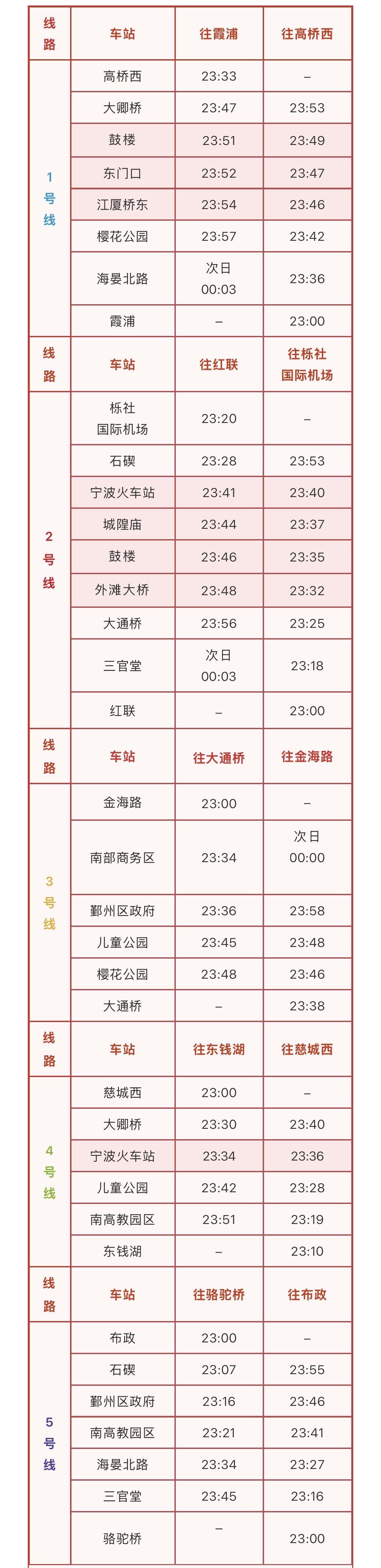 “五一”假期即將來臨,從4月30日起至5月5日,寧波地鐵全線網(wǎng)延長(zhǎng)運(yùn)營(yíng)1小時(shí)。