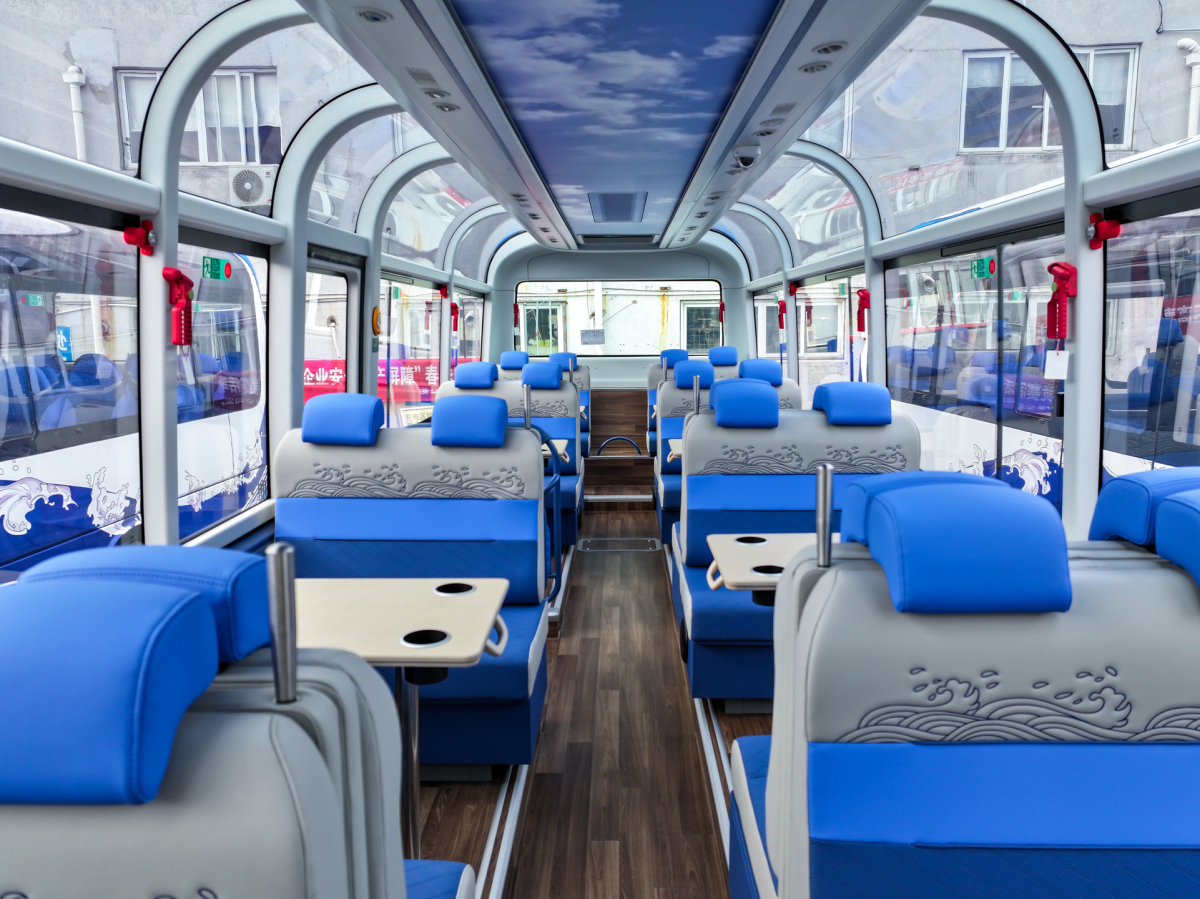 單層全景玻璃觀光車內(nèi)部。通訊員供圖