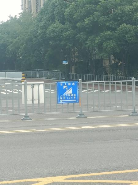 住建部門在戚家耷路路口設(shè)置了地下通道指引牌。