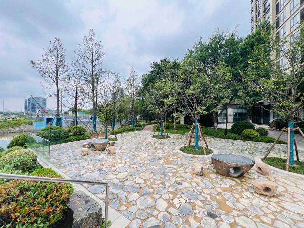 在下穿通道的江灣花苑側(cè)入口處,“甬小園”成為亮點。石桌石椅錯落有致,與附近公園相連,為居民提供休閑空間。