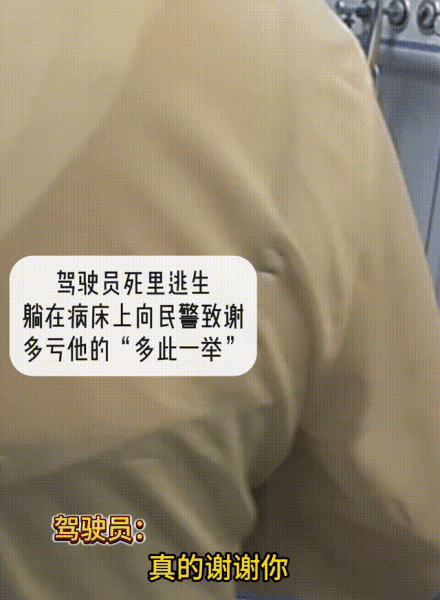 駕駛員被救了回來,躺在病床上仍不忘向“多此一舉”的交警致謝。