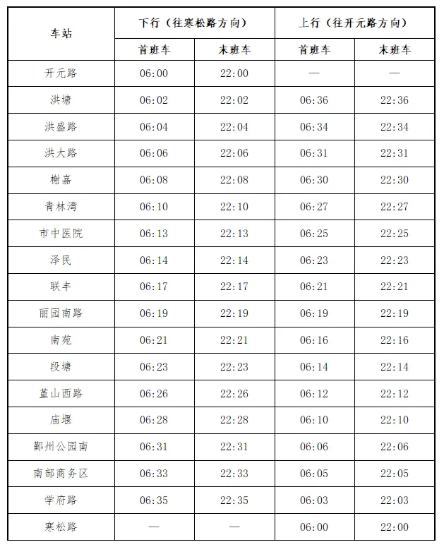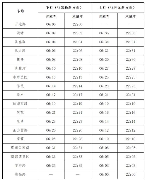 開(kāi)元路站、寒松路站為8號(hào)線兩端始發(fā)站。兩端首班車發(fā)車時(shí)間為6:00,末班車發(fā)車時(shí)間為22:00,全程約38分鐘。開(kāi)通初期,行車間隔為高峰期6分鐘、平峰期8分鐘,低峰期10分鐘。