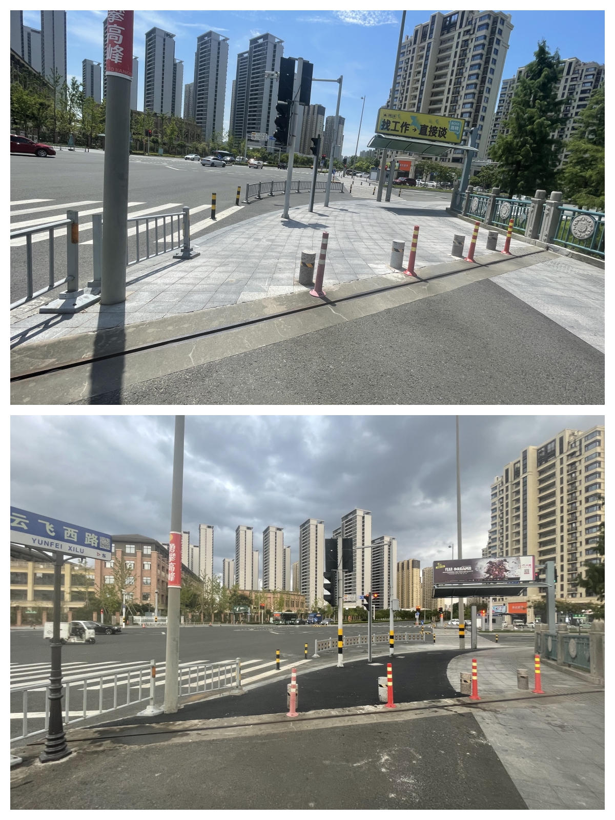 云飛路與機場北路交叉口鋪裝改瀝青整治對比