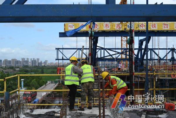 “主橋一共24個(gè)節(jié)段,每個(gè)節(jié)段長約4米,大約13天能完成一個(gè)節(jié)段。每完成一個(gè)節(jié)段,掛籃就往前推進(jìn)4米。隨著掛籃的遷移,就會(huì)產(chǎn)生一個(gè)新的作業(yè)平臺(tái)。”邵家渡大橋III標(biāo)段項(xiàng)目現(xiàn)場負(fù)責(zé)人尹慶雷告訴記者,“目前,我們采用左右掛籃交替作業(yè)的方式,加快推進(jìn)施工作業(yè),為今年10月份主橋的順利合龍打下堅(jiān)實(shí)基礎(chǔ)!”