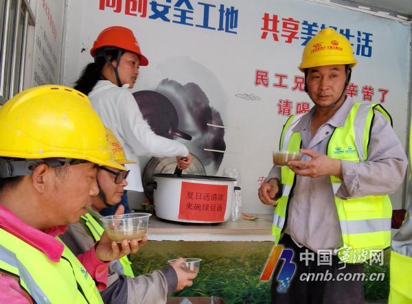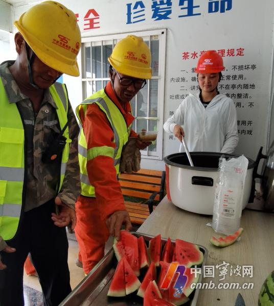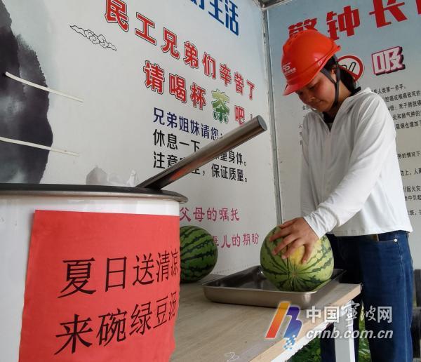工地為工人師傅準(zhǔn)備了綠豆湯和西瓜。劉波 攝