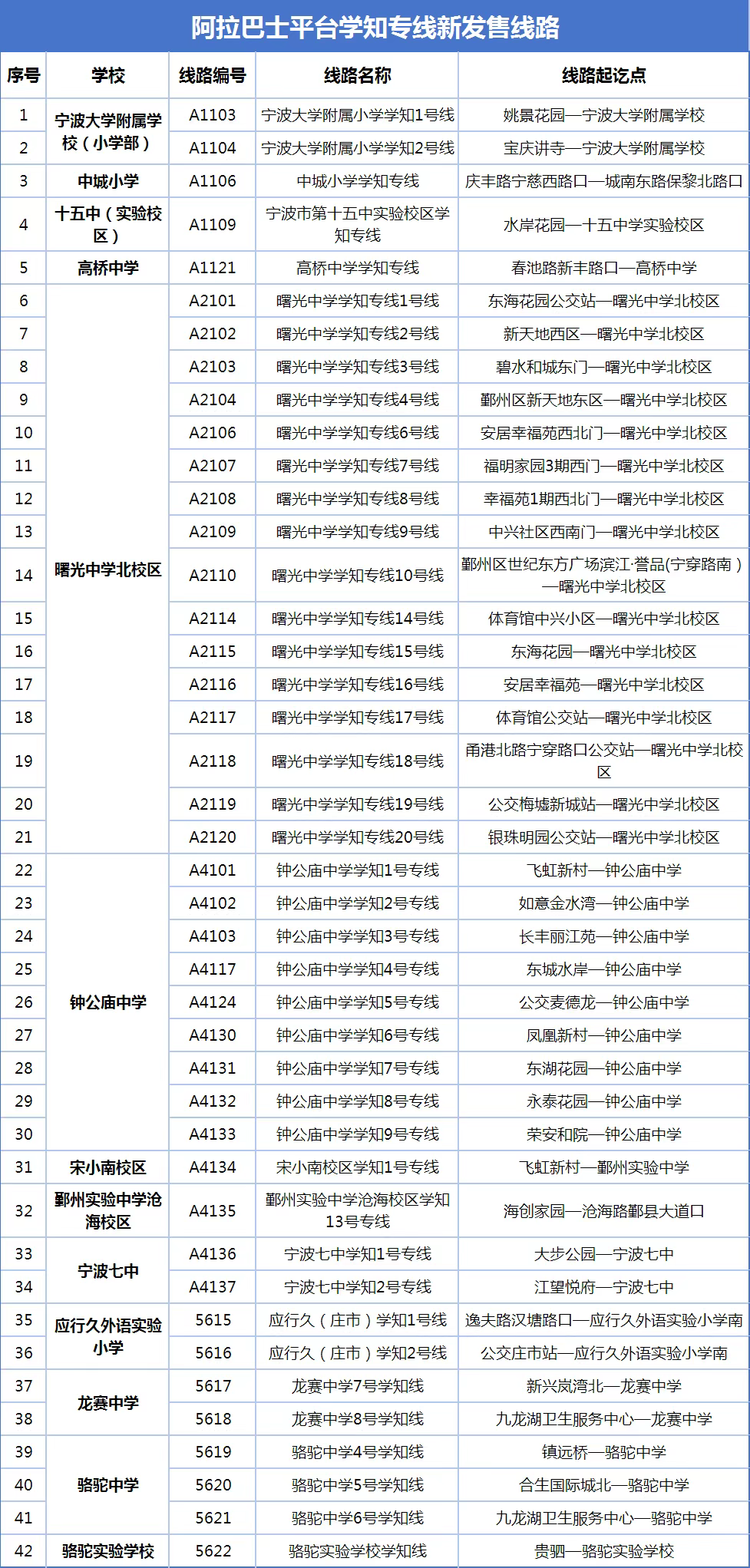 第二波新開售“學(xué)知專線”42條線路如下: