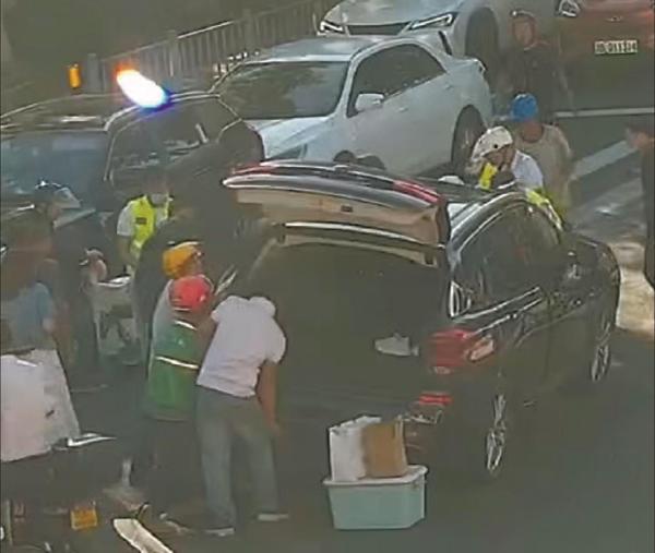 7時12分,鄞州交警城區(qū)一中隊接警后迅速調(diào)派警力,8分鐘后,民警王京國與輔警張高、俞鈞即趕到現(xiàn)場。