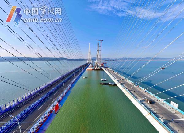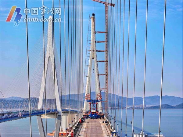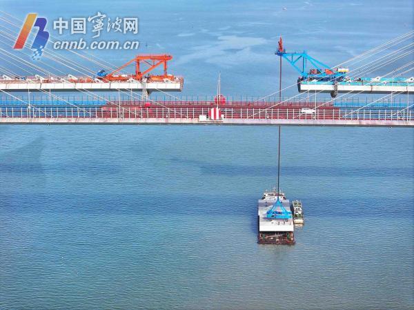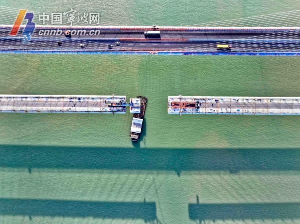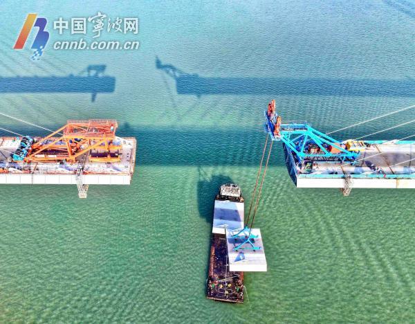 象山港畔,運(yùn)梁船精準(zhǔn)就位,建設(shè)者們手持對(duì)講機(jī)反復(fù)協(xié)調(diào)確認(rèn)。兩座“鉆石”造型的雙子星塔之間,鋼箱梁緩緩升空,海面保障船舶巡回護(hù)航,海陸協(xié)同上演著跨海筑橋的奮進(jìn)圖景。