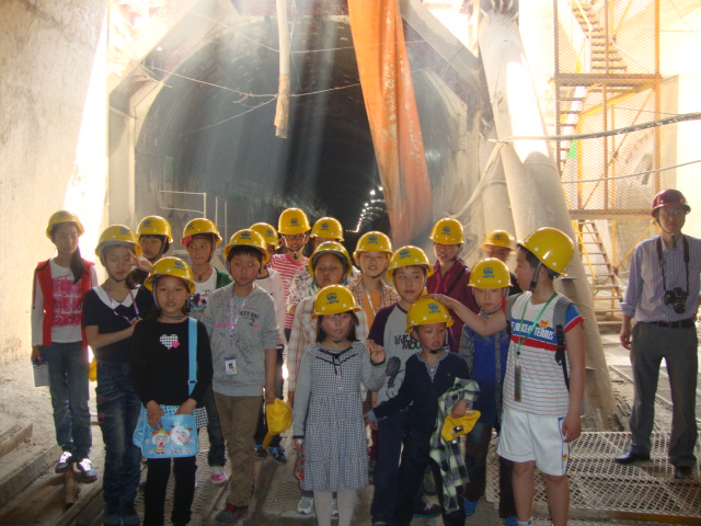 在工地現(xiàn)場,在工作人員幫助下,小記者們都戴上了黃色的安全帽,第一次有這樣的裝束,小記者們都顯得異常興奮,你摸摸我的頭,我摸摸你的頭。接著,中鐵隧道集團(tuán)寧波項(xiàng)目部的陳總工為小記者們講了參觀時注意的一些安全事項(xiàng)。然后和工會楊主席一起帶領(lǐng)小記者們向20米深的地鐵站廣場進(jìn)發(fā),階梯很高也會很狹窄只能允許一個人通行,小記者們排著隊一個跟著一個小心翼翼的跟隨著,下到第一層的通道這里很寬敞,陣陣的混凝土的氣味撲鼻而來,小記者顧不上那么多了,指著深遠(yuǎn)無底的地鐵洞說,“嘖嘖稱贊”。在地下站廣場,小記者們一邊走一邊聽著負(fù)責(zé)人的講解,出于小記者安全考慮,陪同介紹的陳總工未讓小記者們進(jìn)入隧道,就施工過程給小記者們進(jìn)行了詳細(xì)介紹和講解。小記者們現(xiàn)場的提問還真是五花八門,在參觀結(jié)束時,有小記者突然冒出了一個奇怪的問題:施工現(xiàn)場人員的安全帽顏色為什么不同?陳總工程師在贊嘆小記者觀察仔細(xì)的同時,給予了解答。