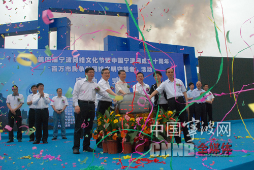16日上午,第四屆寧波網(wǎng)絡(luò)文化節(jié)開幕式暨中國寧波網(wǎng)成立十周年活動(dòng)——“百萬市民爭做網(wǎng)絡(luò)文明守望者”活動(dòng)啟動(dòng)儀式在中山廣場(chǎng)舉行。開幕上,市委常委、宣傳部長宋偉為“網(wǎng)絡(luò)文明守望者”隊(duì)伍授旗,省委宣傳部副部長呂建楚和副市長成岳沖分別致辭,中央有關(guān)部門領(lǐng)導(dǎo),省、市領(lǐng)導(dǎo)共同啟動(dòng)網(wǎng)絡(luò)文化節(jié)開幕激光球。網(wǎng)民代表在開幕式上宣讀網(wǎng)絡(luò)文明守望公約。