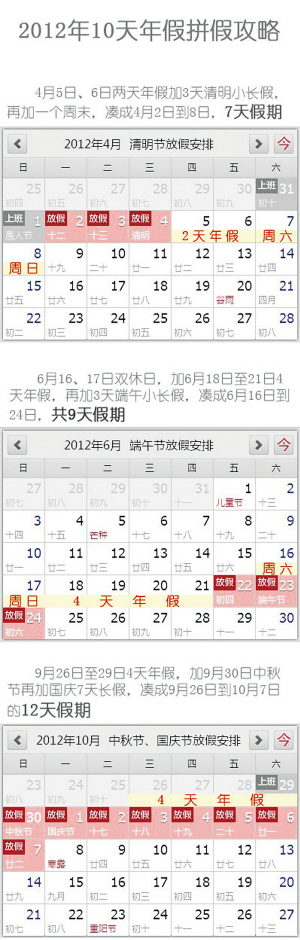 2012年10天年假拼假攻略