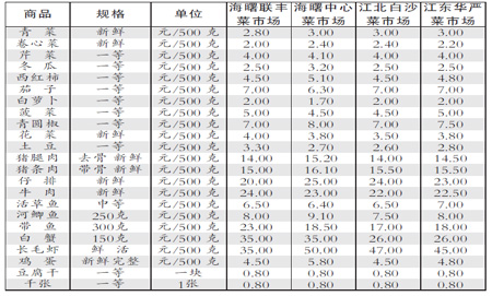 據(jù)監(jiān)測(cè),與上期相比,本期列入民生價(jià)格信息公開范圍的114家超市的49種商品價(jià)格總水平上漲2.30%,4家農(nóng)貿(mào)市場(chǎng)的35種商品價(jià)格總水平微幅下跌0.68%。本期超市商品價(jià)格總水平上漲2.30%。在49個(gè)監(jiān)測(cè)品種中,價(jià)格周環(huán)比上漲的有17種、下跌的有16種、持平的有16種。從種類來看,蔬菜、肉、魚類均價(jià)分別上漲7.39%、4.06%、3.24%;食用油、蛋類均價(jià)分別下跌0.37%、0.27%。從具體品種來看,芹菜、西紅柿、土豆、青菜、胡蘿卜價(jià)格分別上漲40.50%、23.01%、15.57%、11.31%、10.36%;韭菜、黃瓜、西瓜價(jià)格分別下跌16.29%、8.68%、3.52%。