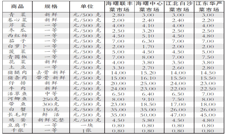 本期菜市場(chǎng)商品價(jià)格總水平微幅下跌0.68%。在35種監(jiān)測(cè)品種中,價(jià)格周環(huán)比下跌的有12種、上漲的有9種、持平的有14種。從種類來看,蛋、魚、肉、蔬菜類均價(jià)分別下跌3.50%、1.60%、0.90%、0.51%;豆制品類均價(jià)上漲0.11%。從具體品種來看,菠菜、青瓜、長(zhǎng)毛蝦、白蟹、花菜價(jià)格分別下跌9.32%、8.75%、5.41%、4.76%、3.89%;茄子、冬瓜、土豆價(jià)格分別上漲6.42%、4.11%、3.50%。