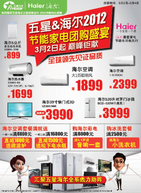 海爾節(jié)能家電團(tuán)購(gòu)盛宴3月2日-4日