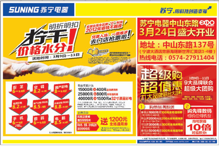 蘇寧電器3月9日-11日打折信息