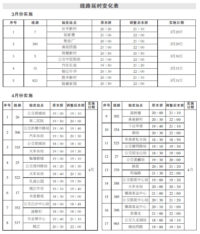 首批22條3月29日起延時 最長延時90分鐘5月和6月進(jìn)行第二、三批次延時