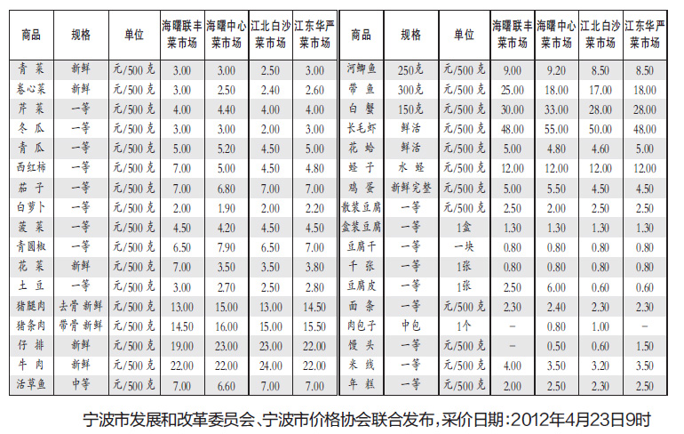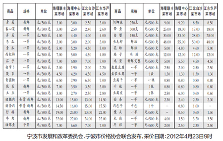 寧波市區(qū)民生商品價格公開信息(采樣4月23日)
