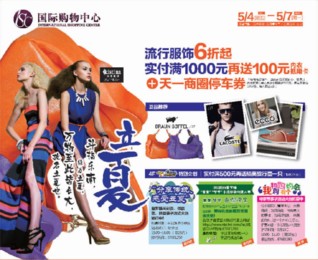 國(guó)際購(gòu)物中心5月4日-7日打折信息