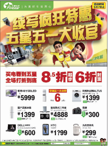 五星電器5月4日--7日打折信息