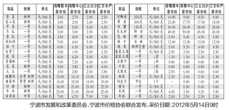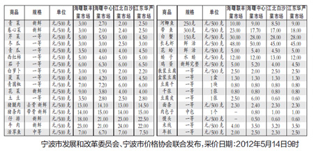 寧波市民生商品價(jià)格公開(kāi)信息(采樣5月14日)