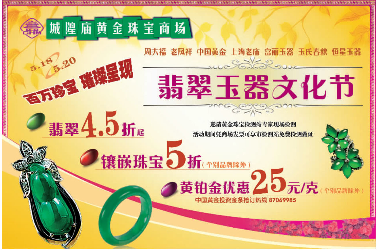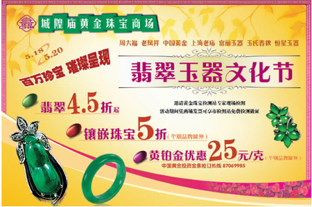 城隍廟黃金珠寶商場(chǎng)5月18--20日打折信息