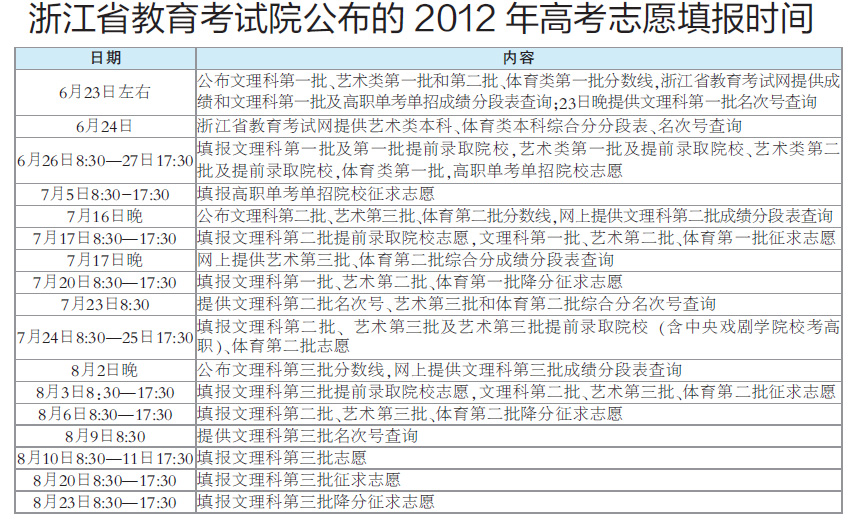 目前我省高考評卷正在有序展開,預(yù)計(jì)在6月23日發(fā)布高考成績,考生成績單由考生直接在網(wǎng)上下載打印。高考成績揭曉的同時(shí),公布文理科第一批本科、藝術(shù)和體育類本科的最低控制分?jǐn)?shù)線。上線考生6月26日至27日在網(wǎng)上填報(bào)相應(yīng)批次的志愿。