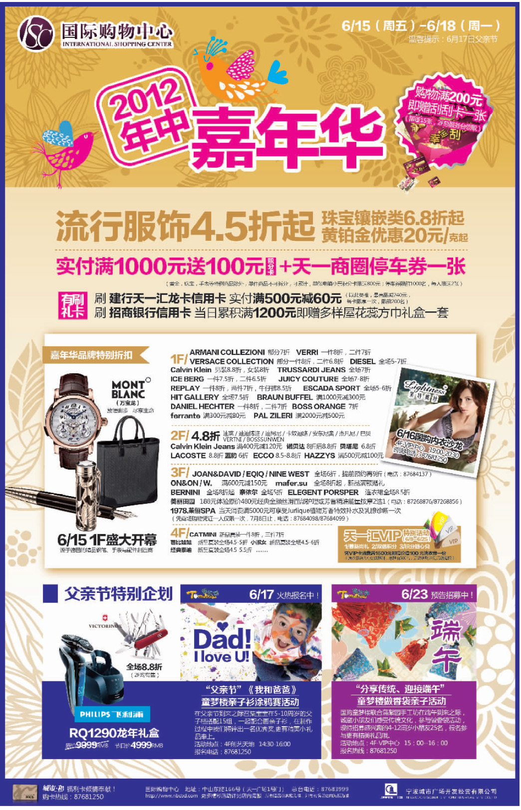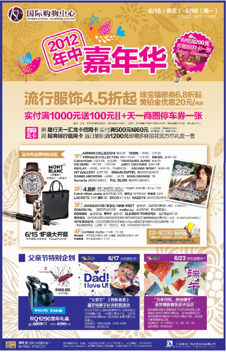 國(guó)際購(gòu)物中心6月15日-18日打折信息