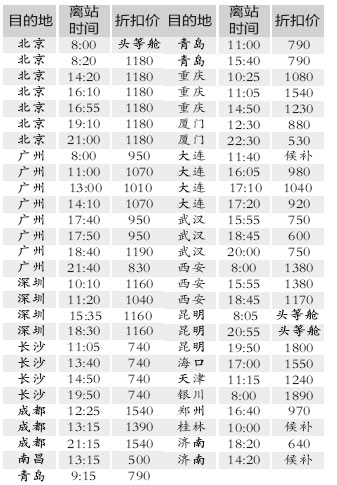 注:按中航信電腦截至昨日16點(diǎn)的信息編制,僅供參考,以上價格均不含稅。24小時售票熱線:88886666、88887777、13336668686,市區(qū)內(nèi)免費(fèi)送票。