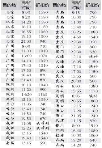 注:按中航信電腦截至昨日16點(diǎn)的信息編制,僅供參考,以上價(jià)格均不含稅。24小時(shí)售票熱線:88886666、88887777、13336668686,市區(qū)內(nèi)免費(fèi)送票。