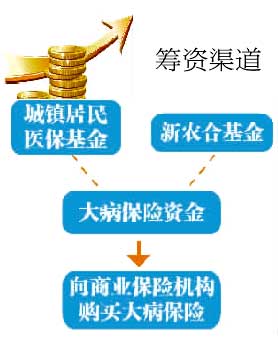 在城鄉(xiāng)居民大病保險的籌資機制方面!兑庖姟分赋,各地可結(jié)合當(dāng)?shù)亟?jīng)濟社會發(fā)展水平、醫(yī)療保險籌資能力、患大病發(fā)生高額醫(yī)療費用的情況、基本醫(yī)療保險補償水平,以及大病保險保障水平等因素,科學(xué)合理確定籌資標準。同時,從城鎮(zhèn)居民醫(yī);、新農(nóng)合基金中劃出一定比例或額度作為大病保險資金。城鎮(zhèn)居民醫(yī)保和新農(nóng)合基金有結(jié)余的地區(qū),利用結(jié)余籌集大病保險資金;結(jié)余不足或沒有結(jié)余的地區(qū),在城鎮(zhèn)居民醫(yī)保、新農(nóng)合年度提高籌資時統(tǒng)籌解決資金來源,逐步完善城鎮(zhèn)居民醫(yī)保、新農(nóng)合多渠道籌資機制。