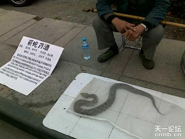 寧波手機(jī)報讀者139****8094:在常青滕小區(qū)大門路邊,一捕蛇人正在守攤賣蛇,捕蛇人說,此蛇是從四明深山里捕獲,有三斤二兩重,三角頭,劇毒,是難得一見的“蘄蛇”,用此蛇來泡酒會很滋補(bǔ)呢!這可是野生保護(hù)動物,我也是偷著賣的,賣800元不貴喲!哈哈!真是一個知法違法的“老實人”啊!